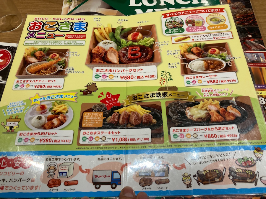 ブロンコビリーは初めてだったのですが、どうやらお子様メニューがあるようですね~