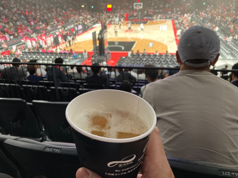お酒とおつまみを片手に、初めてプロバスケットボールを観戦しましたが、なかなか迫力すごいですね~
