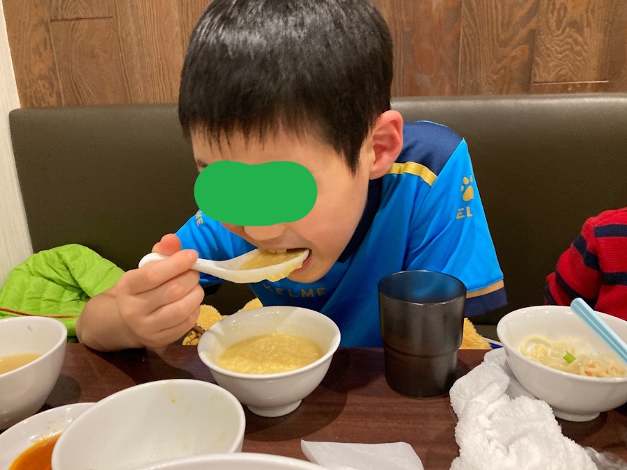 片栗粉でとろみをつけたコーンスープでしたが、子供たちの舌には合った様子。