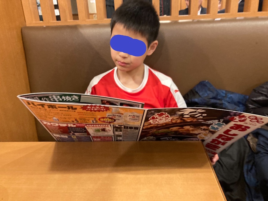 子供たちはチェーン店とはいえ大衆居酒屋に来たのが初めてだったので、何を頼もうか迷ってる様子。
