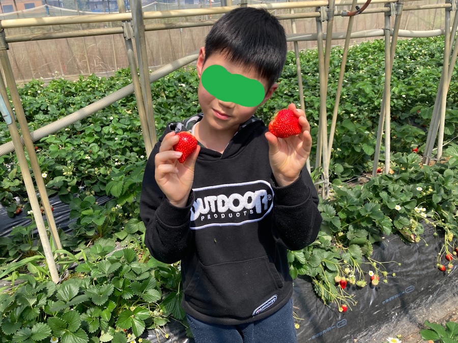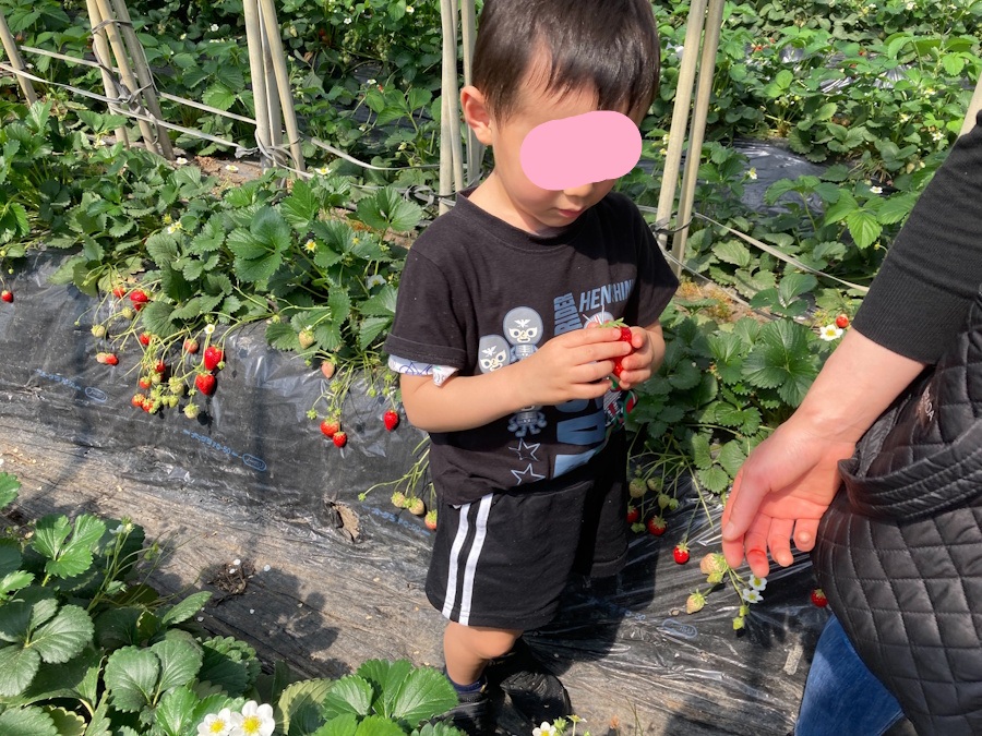4歳の長男はイチゴが大好きなので、大きなイチゴを探して楽しんでいました。