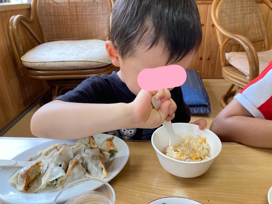 次男と三男はあまりお腹が空いていなかったようなので、今回は2人でシェアするチャーハンと餃子を注文!